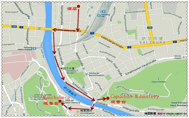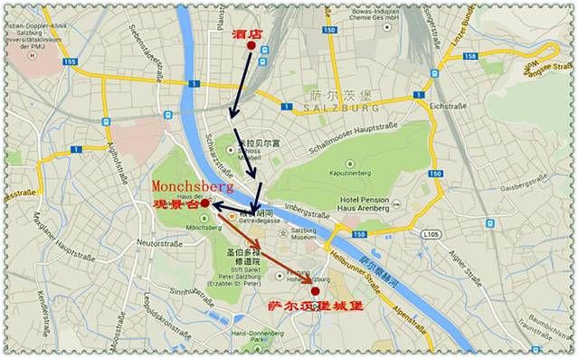 2、到萨尔茨堡当天没买24小时卡,步行为主,上Monchsberg观景平台买了票,3.4欧/人。