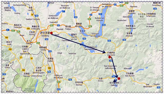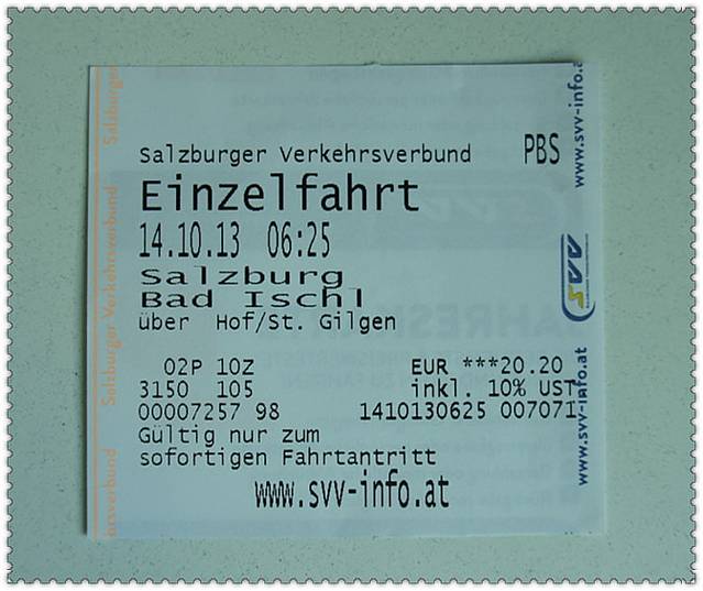 4、萨尔茨堡---哈尔施塔特,先乘150路汽车到巴德伊舍,10.1欧/人,上车司机买票;然后换乘火车去哈尔施塔特,3.5欧/人,柜台买票。