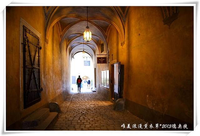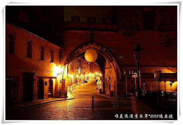 然后去查理大桥,穿过门洞,回头一看,门洞、灯光、大街太神秘了啊,感觉自己在电影中哈哈~