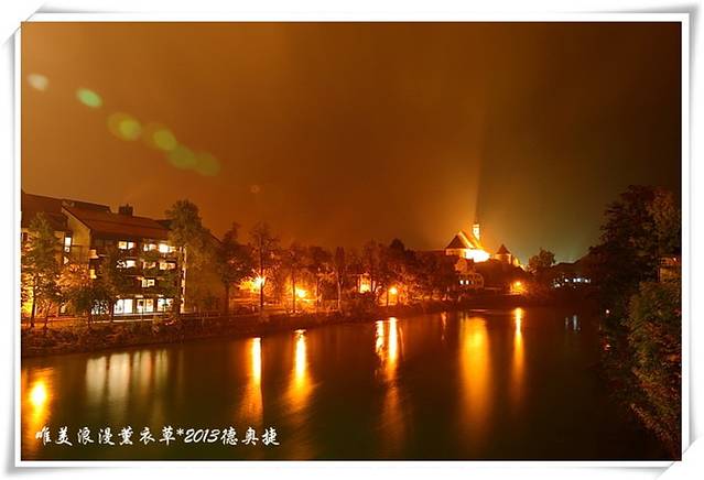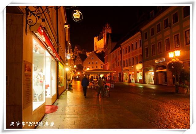 晚饭后,不想呆在房间里浪费了宝贵的时间,决定夜逛小镇。天很黑了,游人基本散尽,偶有个把游人或者居民在街上闲庭散步,街上的霓虹灯把小镇装点得很温馨浪漫,一时间觉得夜晚的福森小镇比白天还要漂亮!