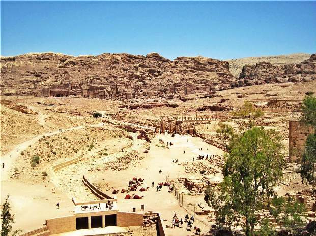 从这里下山坡,往西就是继续往景区内部,通往basin区的“罗马街”,是佩特拉在罗马占领时期修筑的一系列建筑的遗址,和杰拉什、以弗所等以前参观过的罗马遗址一样,这里也有石柱街、Nymphaeum等,但在300AD多年的地震后,维修很少,今天看来保存的不如杰拉什、以弗所等地,也许这里修复的重点是更早期的纳巴特建筑,所以罗马的建筑就不是太受重视