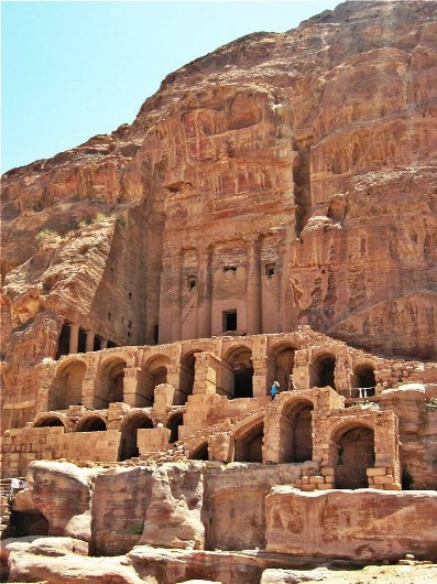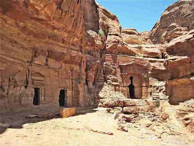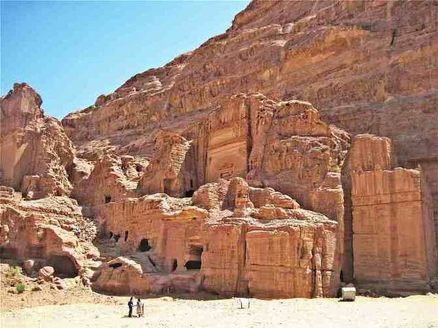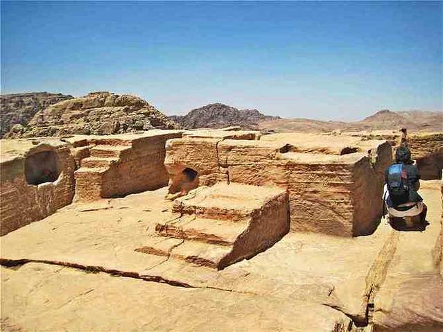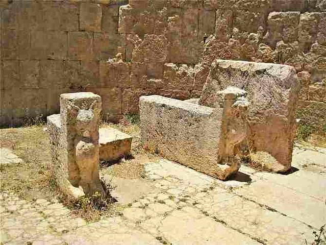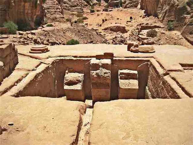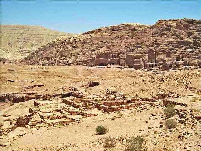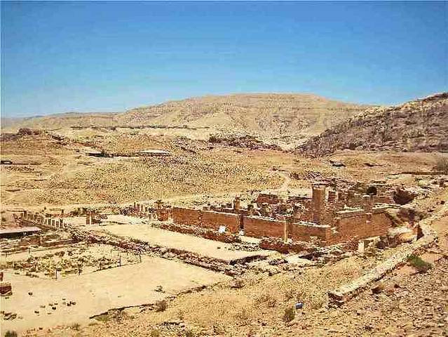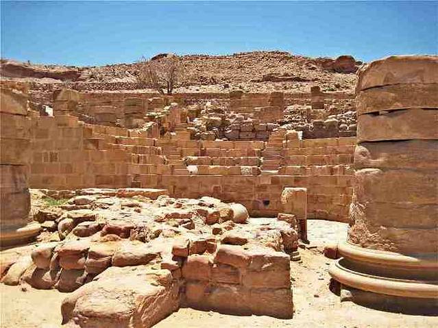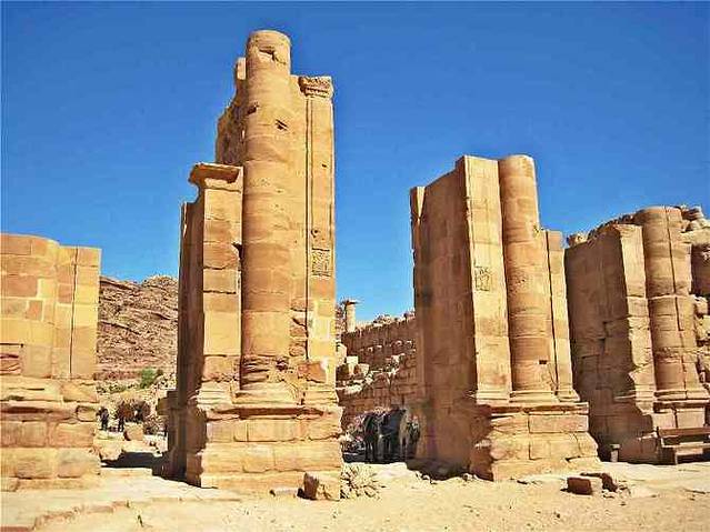 在凯旋门以西,座落着Qasr Al-bint,修筑于公元1世纪前半期,曾经是佩特拉最重要的神庙,不仅佩特拉城里的人,周围的纳巴特人也都来这里朝圣,这里也是纳巴特时期城市的中心。这座temple四方形的主体结构,目前的遗址还有20多米高,建在基座之上,从布局看,是典型的亚历山大时期风格,宗教仪式的时候只有主要的祭司才能进入建筑中心的holy area,执行以动物献祭等活动,其他人都只能在外围等候。这里被认为是献给纳巴特人的神Dushara的