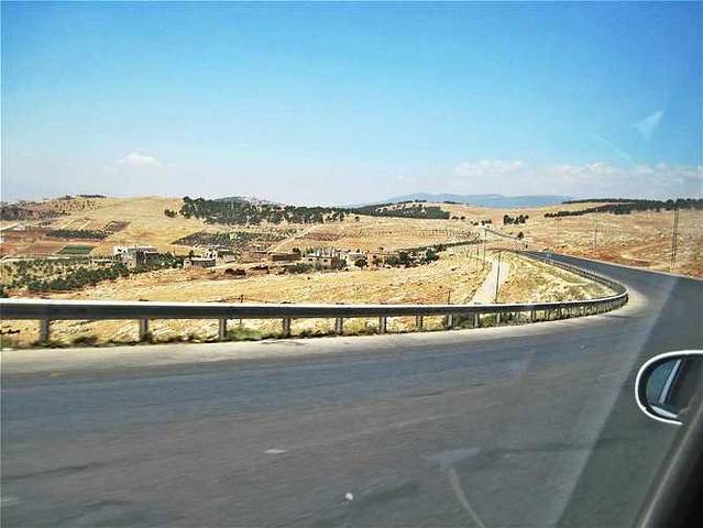 从Amra离开大约1个半小时后又回到安曼,但没有进城,在城边缘转了个弯,就往北、Jerash方向(35号高速)开去。和安曼东部全是沙漠不同,安曼往北就是丘陵区,翻山越岭的路上,能看到不少绿色植被区,在一些山谷中还能看到小片的农田,也有蓄水池、河流