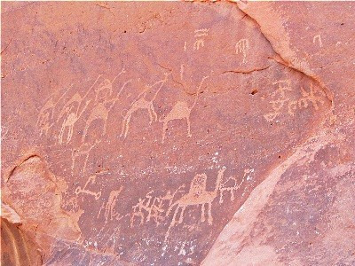 下一处景点是一块大岩石,其上有inscription,叫做Anfishieh Inscriptions,似乎描画的是一个商队,有骆驼、商人、货物,考古学家认为这是公元前3-4世纪到纳巴特时期的,说明那时这里曾是中东地区重要的商路