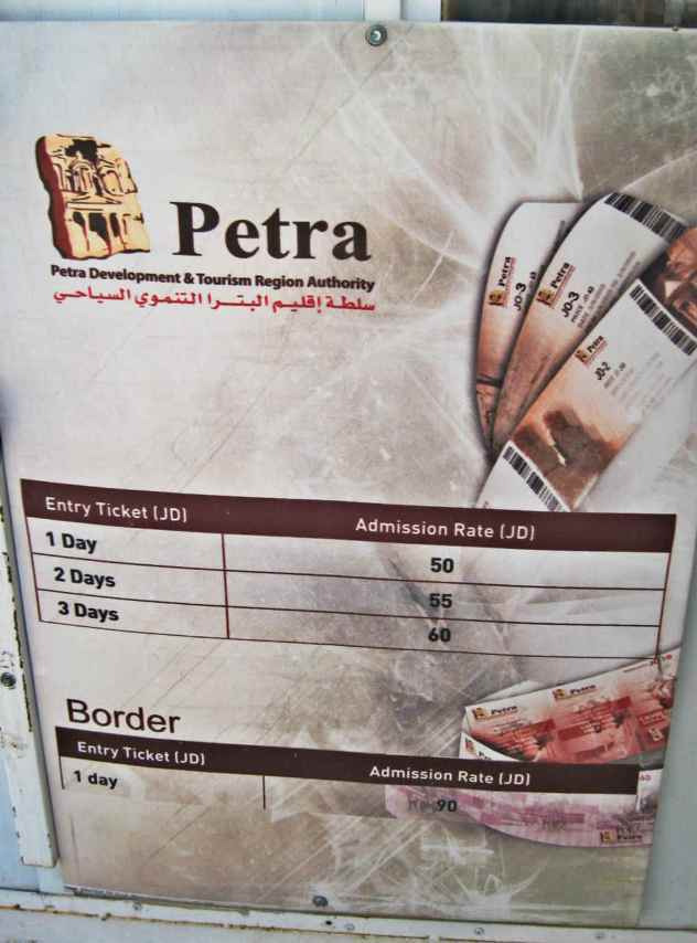 于是司机带我们穿过停车场一侧的小市场才到了收费处,市场里全都是卖旅游纪念品的摊位。门票价格写在大牌子上,本来有学生票一项,但涂抹掉了,改成和常规票一样,8JD,真不便宜。售票处不负责检票,检票点在进入景区走大概15min的路之后,所以实际上最南端的几个景点是免费看的,但千万不要以为可以逃票,到检票点没有票的话只能原路走回来买!售票亭旁边有洗手间,检票处的访客中心也有
