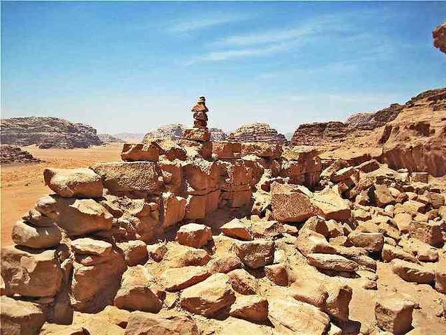 接下来再往沙漠深处,开了一段不短的路程,到了一处石房子废墟,Lawrence House,这是纳巴特住宅的遗迹,据说劳伦斯曾在这里藏武器。这处废墟已经十分破烂了,墙壁大部分已经坍塌,房顶都不见踪影了。这里地势稍高,看周边的风景,都很不错。司机在这里还殷勤地给我们倒苹果汁喝,这些饮料都是包括在tour费用里的,不喝就浪费了