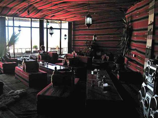 李同学是打车从以色列边境直接赶到Petra的,出租司机还没走,就说服他搭我们再进镇子,司机起初不乐意,后来想到可以推销餐馆,也就同意了。因为付了酒店房费没有现金了,先要求他停在一处ATM取钱,旅伴只用银联卡,而这个Arab bank的ATM没有银联标志,就只有我取了钱;之后又到李同学打算入住的镇子里的hostel,等李同学办了入住手续;再由司机载到一家饭馆。听司机描述是很好的,在镇子中心,自助餐,便宜,等到了地方一看,位置并不在镇子里,而且没有自助,看装潢的精致估计价格也不便宜,实际上也没见到有其他客人。我们几个都决定不能在这里挨宰,就打发走了司机,自己走回镇子里去。司机走的时候还坚持留了电话号码,说是petra之后去其它地方,例如little petra,可以叫他的车