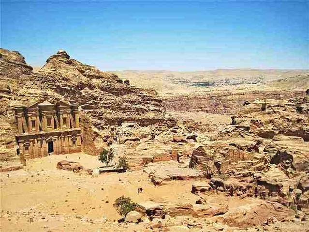我走一段休息一段,很难找荫凉的所在,因为树木很少,走了40多分钟,到了Deir修道院门口,这也包括骑了一段驴。当我上到3/4的时候,沿途的小贩骗人说还有一半路程,我觉得体力耗费殆尽,就骑了一段他家的小驴,出价10JD,我砍价到5JD,后来又多给了1JD小费,沿途小贩在驴后面,用鞭子跟着驱赶,驴一般很慢,驱赶一下就猛走几步,就颠簸很厉害,我赶快和小贩说让驴自己走吧,我怕摔下来。感觉是,腿脚虽然休息了,身体其它部分要骑久了也消受不了。也没骑到Deir门口,到还有2分钟步行路程的时候就把我放下来了。我走的时候还一直试图让我下山时候再乘坐他的驴,还说在原地等我下山,好不容易才摆脱纠缠