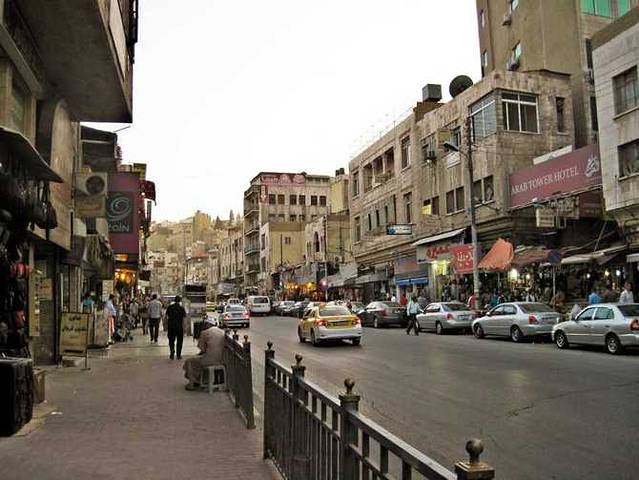 在T站下车后,立即就有几位出租司机围拢上来,竟然有一位什么都没说就跟着我到车尾要主动帮我提行李,我赶快自己取了行李。我问其中一位司机到我预定的jordan tower hotel多少钱,这个酒店tripadvisor等网站评价都比较高,在安曼还是比较出名的,司机都知道。先出价5-6 JD,我知道最多不会超过3JD,所以就以这个价格还价,对方起初不肯,我就假装要走开,找别的出租车去,司机就不断降价,5、4、3.5,最后同意3块钱,不过不是和我谈价格这位司机拉活儿,而是让给他旁边一位司机,这位司机没有挂牌的出租车,是开黑车的
