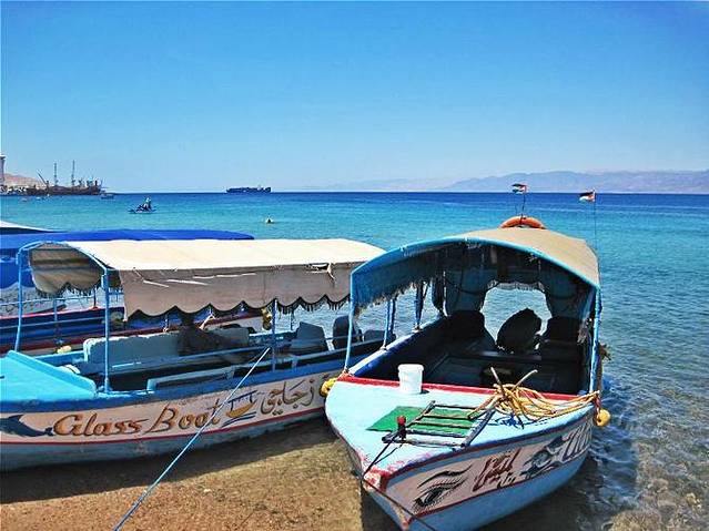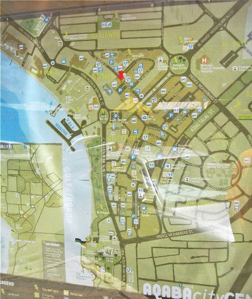 第二天早上睡到9点多才起床,洗漱后到餐厅吃早点,是包括在房费里的,很丰盛,热菜有多种,还有肉片,配面包和面饼,饮料有鲜榨果汁和奶。这一天的安排是在Aqaba城里逛逛,之后坐大巴返回安曼,夜里的航班经过伊斯坦布尔转机飞往格鲁吉亚首都第比利斯,之后继续外高加索的行程。所以时间很宽松,吃完饭回房间就继续睡,一直到11点。大部分游客来aqaba要潜水,我这个没计划,每天还有1-2班玻璃船开到海中看水下生物,30JD/人,可以在酒店前台register,会有车到酒店来pick up送到码头,我觉得有些贵,也就没报名。所以这一天只要晚上赶回安曼,其它时间就不用赶了