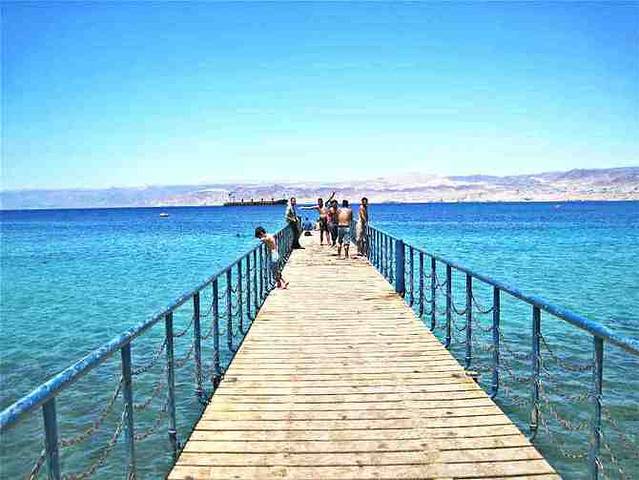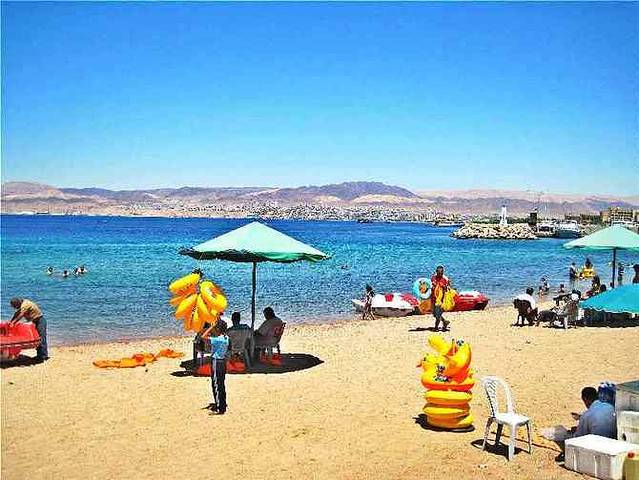 这里的停车场没看到有其它出租车,所以临时找车还真不一定有,看到有JETT大巴,但其网站上没有写在Wadi Rum有站,所以很可能是包租的车。从Wadi Rum到Aqaba是往西60公里,高速公路路况不错,1小时左右就到了。到亚喀巴附近,果然是海滨城市的范儿,成排的棕榈树,碧蓝的海水,繁忙的货运码头、度假海滩...完全不是前面这些天在沙漠里奔波的感受。虽然这里也算是沙漠气候,冬天暖和,夏天干燥酷热。另外的印象是这里很新,据统计全城只有44%的建筑是1990年之前修筑的!