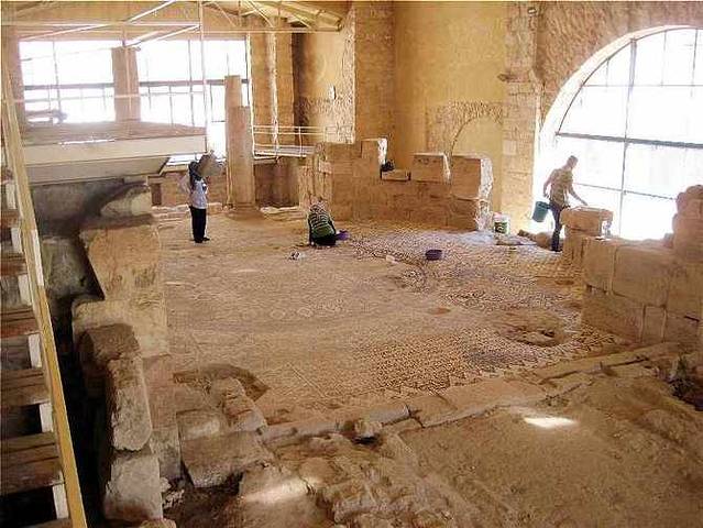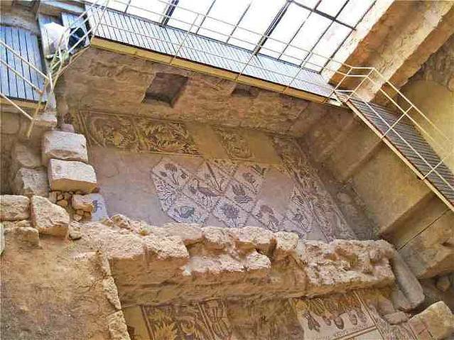 相比于St George,这里门庭冷落,门票2JD,而且还捆绑着包括附近的另外两个景点,可惜我们没时间,就没去。这里确实可以称为“考古公园”,因为可以现场观看工作人员是如何维护修复地面的mosaic的,眼看着脏兮兮落满尘土的石块被擦干净。这个院子也不大,沿着布置好的参观走廊,10分钟可以看完了