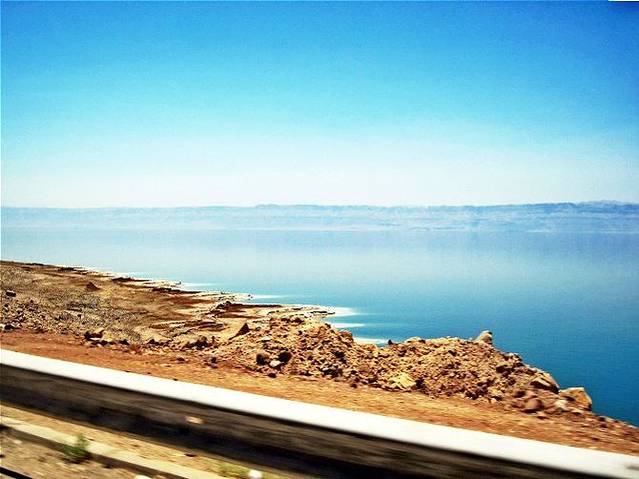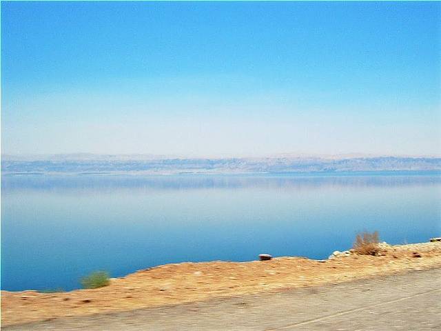 开车大概40多分钟,到了Amman beach附近,我的旅伴什么功课也不做,但仍然知道约旦有死海,可见其知名度,老实讲,死海在我的想像里是很丑的,也许是因为这倒霉的名字吧,所以当我们穿过荒芜的土丘和沙漠,来到那一湾碧蓝而澄明,烟波浩渺的水面之前的时候,我还在怀疑,这真的是死海么?这里很多国际连锁酒店,如希尔顿,holliday inn,movenpick,等等,也有约旦本国的高档酒店,都是resort,各自有一段死海海滩,有人玩得休闲,可以在这里住上一两天