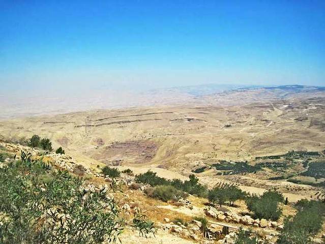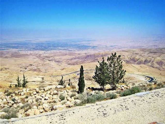 在madaba已经可以看到Nebo山的路牌了,从madaba出发,开了20分钟,走山路,到了Nebo山景点门口。King's Highway一路上景点都有明确的棕色指示牌,并且是阿拉伯、英文双语的,非常适合自驾。Nebo山不算高,在海平面上817米高,作为宗教圣地而吸引着各国的游客和朝圣者。在圣经中提及,这里是摩西与上帝见面的地方,摩西在这里得到上帝的应允,要给与以色列人迦南的土地,在这山上,就可以俯瞰这片土地,所谓Holy Land;基督徒和一大部分伊斯兰教信徒也都相信,摩西死后也是埋在这里的,尽管确切位置不清楚,当然,也有人认为埋在耶路撒冷或者耶利哥。对Nebo山本身,目前也有学者持怀疑态度,认为现代的Nebo山并非圣经中提及的Nebo山,但不管怎样,这里的符号意义是明显的:本.拉登生前就曾计划在2000年1月1日炸毁尼波山;2000年教皇约翰保罗二世就来此探访,在此栽种象征和平的橄榄树;2009年教皇本笃十六世也来此访问,在此深情眺望耶路撒冷