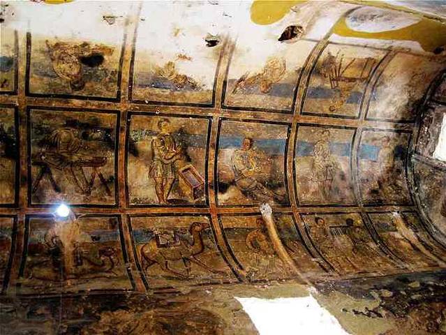 从士兵墓地再往basin方向(往北),就见到“文艺复兴墓地”(renaissance tomb),走进内部,可以看到地面有14处墓穴,这是2003年考古发掘的,当时就发现所有墓穴都被中世纪的盗匪偷掘过了,财宝即使有也早就被偷走,只剩下一些尸骨和陶器。有一处inscription可以证明这处墓穴建于公元1世纪下半期