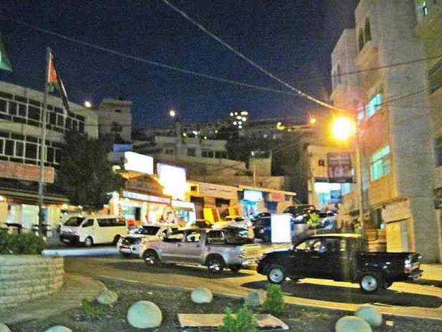 回住处之前现在镇子里逛逛,买了些饮料、饮水,天色已黑,镇子还是满热闹的,本地人的夜生活才刚开始。旅伴找到了一家有银联标志的ATM,是Amman Bank的,在李同学住的hostel前的路口道别,相约第二天在景区里见,但也没定具体时间,估计各自安排也不一致。按大致方向我和旅伴往rocky mountain hotel方向走,路上有很多出租车,有正规的也有黑车,在一处商店前的路边,刚好停了辆黑车,我随意问了一下价格,出价1JD,我还价说0.5JD,对方竟然一口答应,于是搭这辆车回酒店。