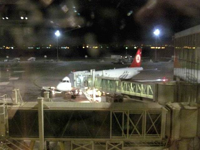 这里星巴克是24小时营业,而且机场有free wifi很好用,我可以安心在这里边吃边上网边看书,等到夜里12:30才离开,再上楼到出发层。这次看门的警卫允许我进入了,并且指点我到我需要乘坐的土航的柜台去值机。出发层的值机柜台占据两个侧翼,一半位置都是Royal Jordanian的,其它航空公司的再另一半,但大多也是Royal Jordanian的地勤帮忙办公。土航这边值机的人还不多,排队等了2、3分钟就到我,没有问我土耳其签证的事,因为都知道在IST转机不需要签证,但因为我转机后要到格鲁吉亚,就问我是否有格鲁吉亚签证,我说可以落地签,值机的大哥就查了IATA,确认后给我打出了两程的boarding pass,我掏出UA的银卡问是否能升舱,回答说已经没有available的座位了,其实就是嘴上对付