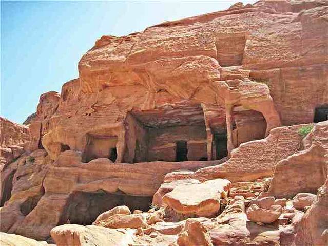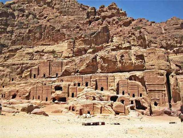 休息了一会儿,就找不到旅伴了,可能还在Urn tomb,也可能到其它地方去了,于是就自己再往景区深处走。在Urn tomb旁边是另外几处tomb,从山坡走上去可以看到,从南到北连在一起的依次是Silk tomb, Corinthian tomb, Palace tomb,再往北还有零散的tomb,我就没去看,太远了,这些tomb正面看雕凿风格都很大方、气派