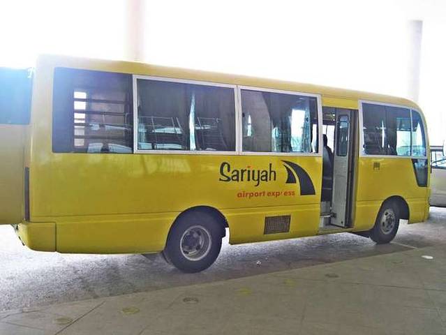 从入境签证大厅得到签证,就下一层楼到行李提取处,出口已经排起长队了,有海关检查。我没有托运行李,但也只能排队,快轮到我的时候,警察看到我没有托运行李,就简单问了我一下背包和拉杆包里有什么,我如实回答主要是衣物,于是警察就放行,让我走绿色通道了。在机场到达厅就看到门口停着黄色面包车,车身写着Sariyah,按照事先的功课应该就是到市区的bus了,terminal里有information,我仍然走过去打听、确认了一下,果然是。除了terminal感受了一下气温,确实比热浪袭人的多哈好很多,30摄氏度左右,而且微风阵阵。黄色巴士旁有几个工作人员,找他们买票,到终点Tabarbour站是3.25 JD/人,之前还停一站7th circle,可能便宜一些,交钱后给一张黄色的纸条,行李是不加收费用的,售票员还帮我把拉杆包放到车尾行李舱里,背包让我背上车了