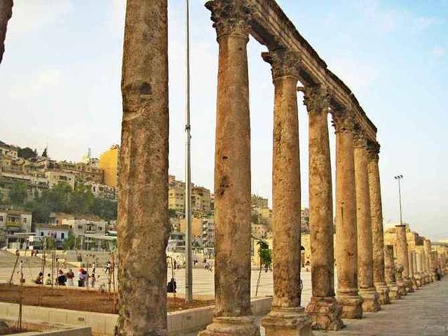安曼(Amman)是约旦的首都,位于约旦北部,西侧是阿吉伦山地,人口约120万人,是全国最大的城市。安曼是一座著名的中东古城,陈列在安曼考古学博物馆中的3000多年前的器物证明,安曼在那时就有人定居了。因为地理位置的重要,这里曾经多次遭到外来侵略,先后被亚述人、迦勒底人、波斯人、希腊人占领。公元前4世纪,马其顿国王亚历山大征服了这个地方,他下属的将军指挥扩建了安曼城,并把它命名为Philadelphia,这个名字据说来源于古埃及托勒密二世,不清楚今天美国的费城是否也是这样命名的。后来,罗马人来到这里,统治了数世纪之久,继续沿用安曼这个名字。由于安曼处在东、西方交通要道上,当时便成为繁华的商业中心