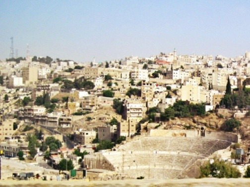 安曼的地势很有特点,是一座山城,城市建筑在七座小山岗上,这是罗马神话导致的罗马人建城选址的传统,例如君士坦丁堡(伊斯坦布尔)也是这样选址的。市区马路狭窄弯曲,有些地段的坡度还相当大,街道也比较窄,好在两侧的房屋都不高,大多二三层,随着山势起伏,这些式样各异的楼房从山下到山上整齐地排列着。山腰间和山坡上,有一片片分散着的草地或小花园,市容显得很和谐。大多数房屋的墙用白色的石头垒成,显得分外洁净