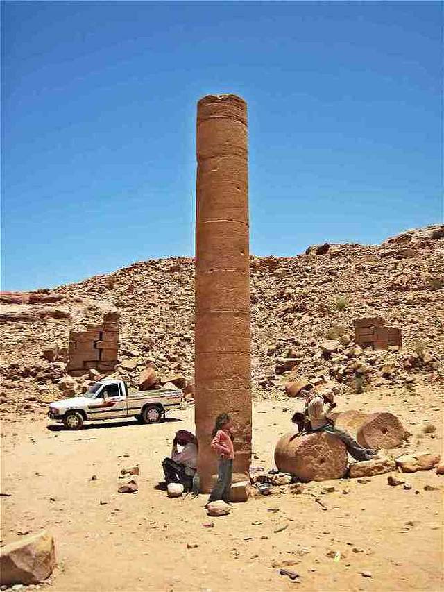 绕过这处遗址往前走,就能看到罗马街,great temple complex以及Al-bint神庙了,下山坡后就到了Al-bint的背后,沿着Umm Al-Beyyara山下是一条古代商路,据说可以通往埃及,立着一个孤零零的石柱,考古学家认为是商路上一处神庙的遗迹