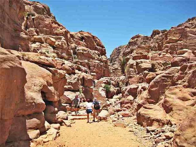 在这僻静的地方休息了片刻,回到主路继续上山,也没有像国内的景点修整齐的石台阶,完全是在原有岩石上凿出一些粗陋的石级来,沿途有不少卖饮料、纪念品的小摊,价格和山下也差不多。除了有不少上上下下的游人,也有上上下下的驴,生意都不太好,大多客人还是步行的,不载客的驴就有主人骑在鞍上,很多还是小孩子,也不正经骑着,侧身骑着,一边上山一边吹口琴。