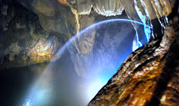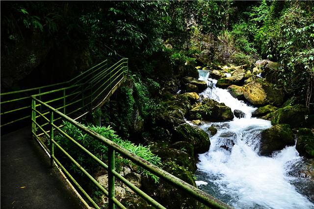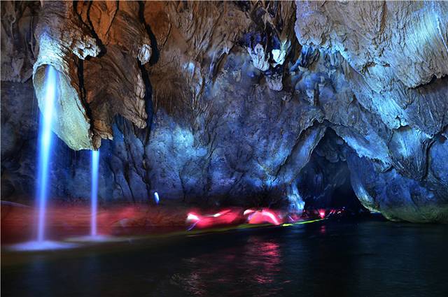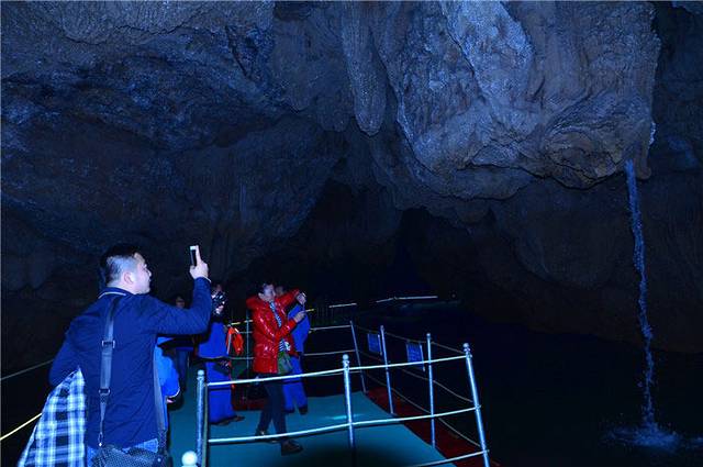 在漂流或者徒步的过程中可以一路欣赏峡谷风光,体验漂流带给你的激情,特别是新桥大峡谷118米高的新桥瀑布从天而降,让人赏心悦目而倍感畅快淋漓。在漂流穿越地下河溶洞时,有金龙吐珠、鲤鱼喷玉、顽童撒尿等绝景奇观,还有形状奇妙的钟乳石和清澈翻滚的地下涌泉。漂流游览全程时间大约4小时。乘橡皮艇,从古劳村入口一直到新桥溶洞出口,只有一条通道,不走回头路。