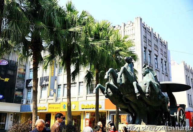 街心的五马奔腾雕塑。