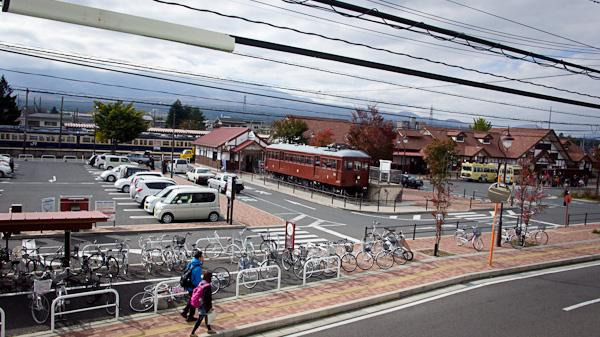 河口湖车站到了,从车站里面拍出去