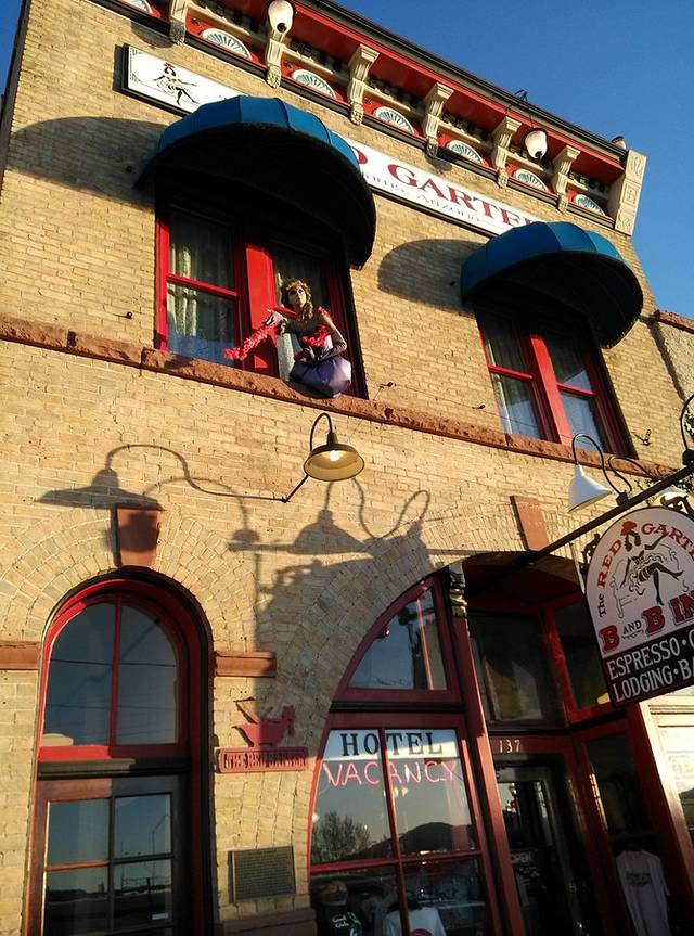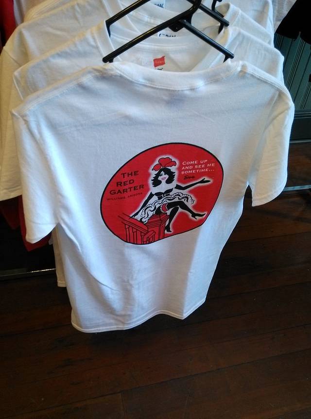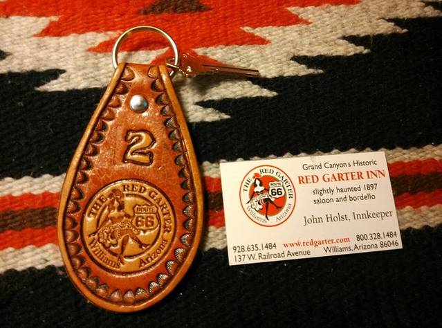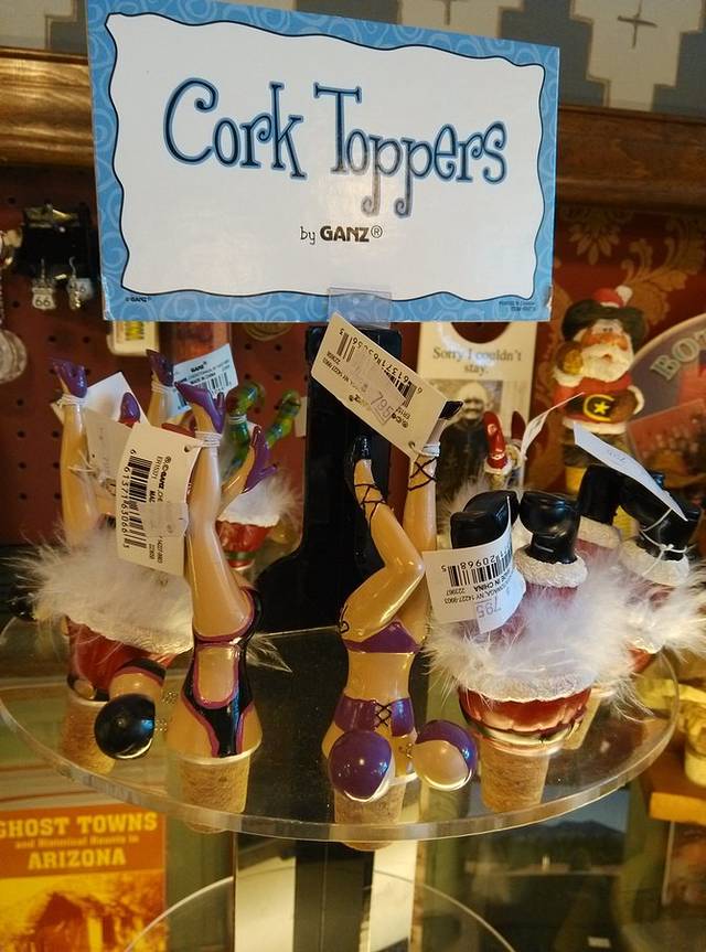 进威廉姆斯小镇,正考虑哪里能停车,就看见右手有个公共停车场,拐进去准备搜住宿地,抬眼正对着这家红色吊袜带旅馆,是个B&B,含早餐。名字很香艳,二楼窗台上还有个女人模特,招摇的姿势。看到有空房间的霓虹灯,进店。店里很多好玩的卡片和各种物件,瓶塞很有趣,大腿大胸倒着。