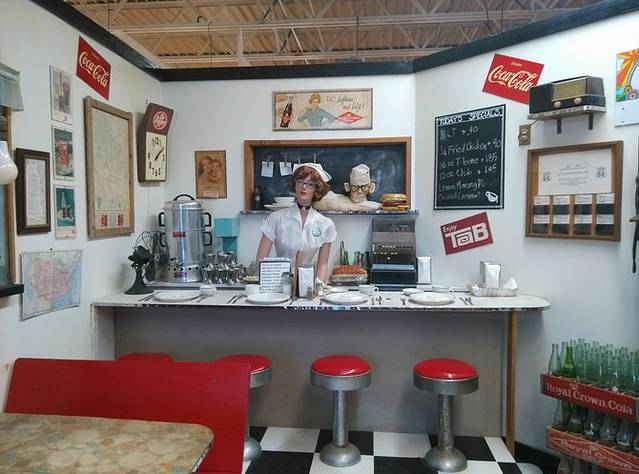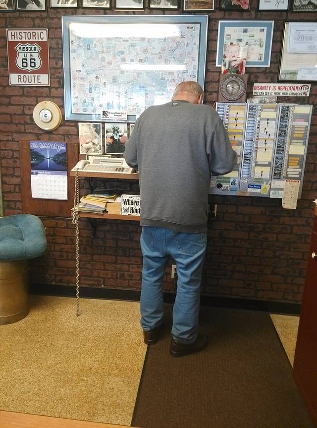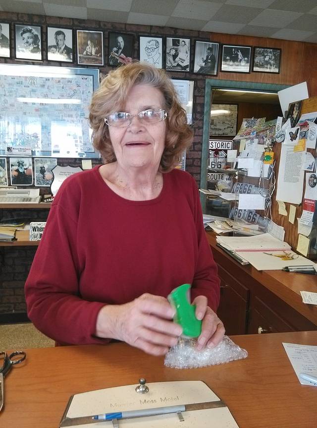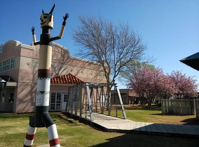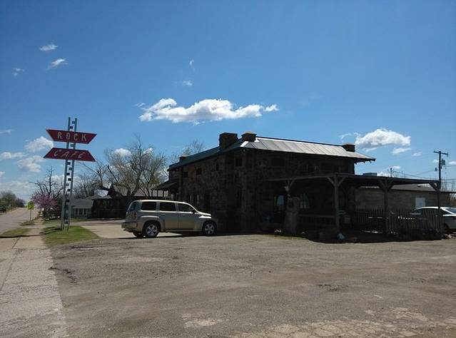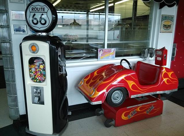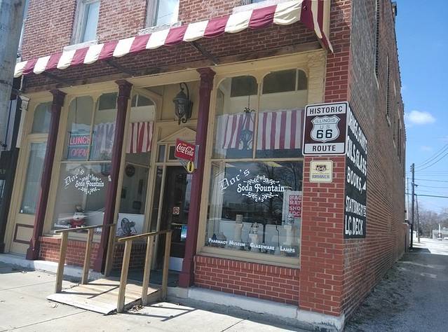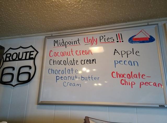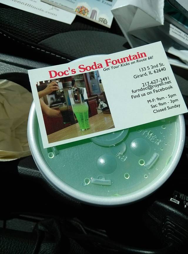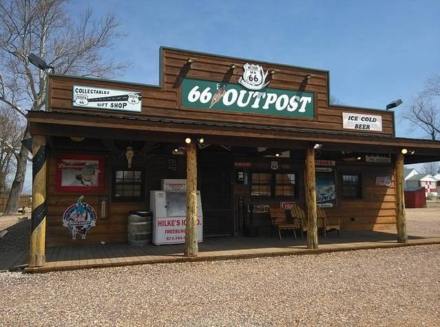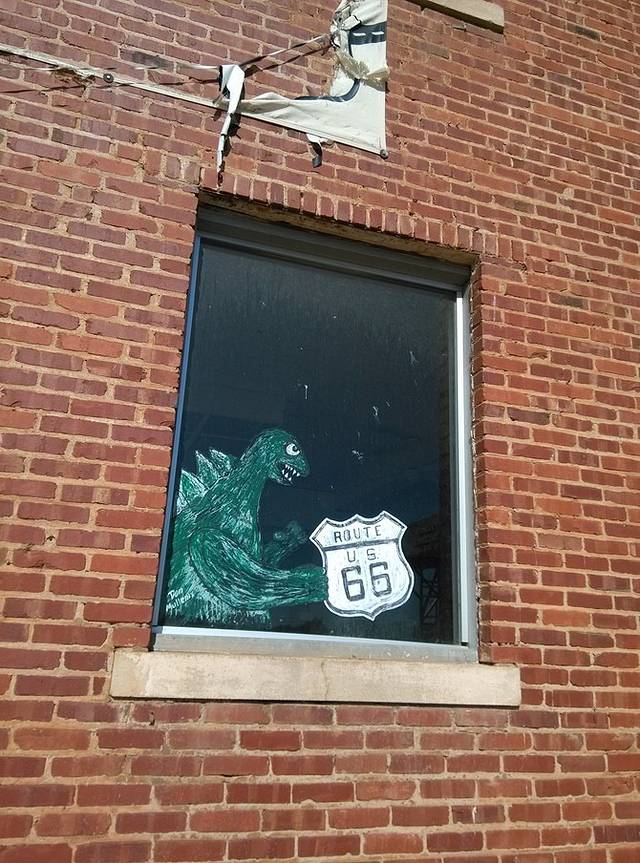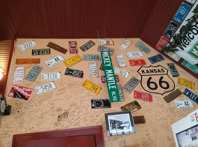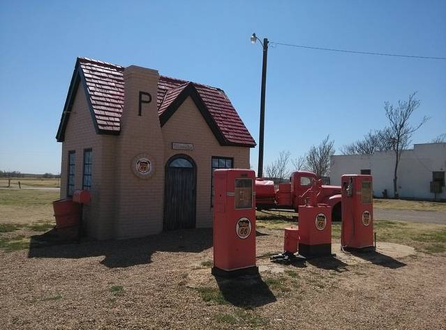 第三站Doc's Soda Fountain和Drug Store Museum,两家在一个屋里。墙上挂着世界地图,走66的人会在自己的城市插个小图钉。北京这里有一个人插了,我在旁边也用力按上一个。买杯招牌苏打水,味道很不错。昨天德怀特加油站关门没法按图钉,在这里补上。正如和前面旧物店老太太聊天,我说昨天我错过了很多东西没看到,老人家说,你也许错过了一些东西,但是后面你可能会发现更有趣的。确实是啊,昨天各种关门趴窗户,今天走这条路比走55更好玩。而且天气爆好,得有20多度,和昨天差两个季节。