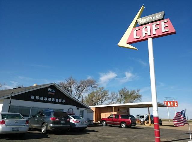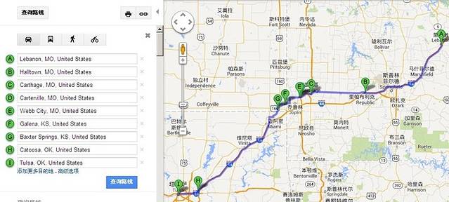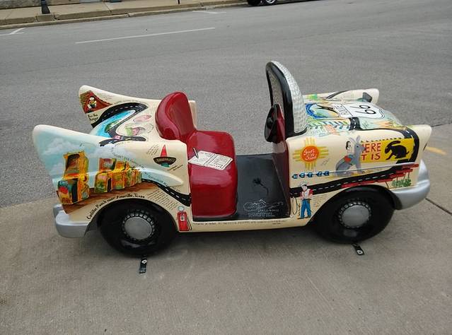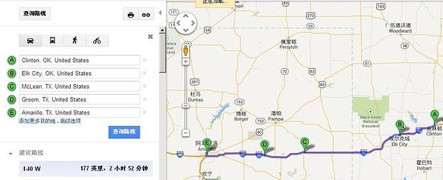 中午之前到达Adrian,66号公路的中间点。路上车不多,经常前后左右都是那几辆车。超过一辆SUV,看到一对青年男女,一边开车一边聊天吃东西,心里默默地羡慕嫉妒恨啊!我从芝加哥出来车里就放一盘CD,一直就没换,听什么不重要,就为了车里能有个声陪我,要不真会闷死的。