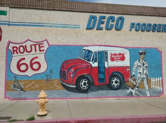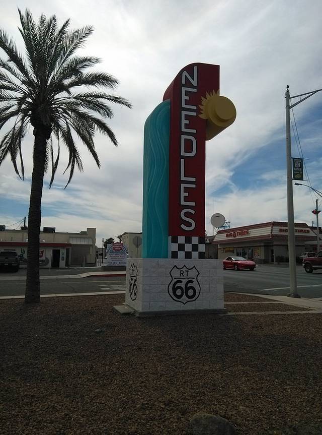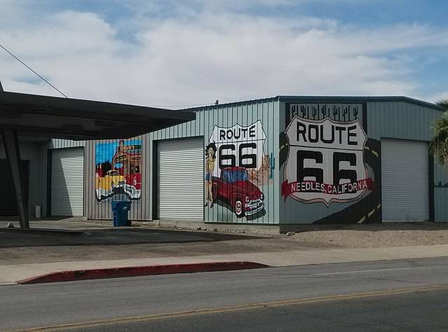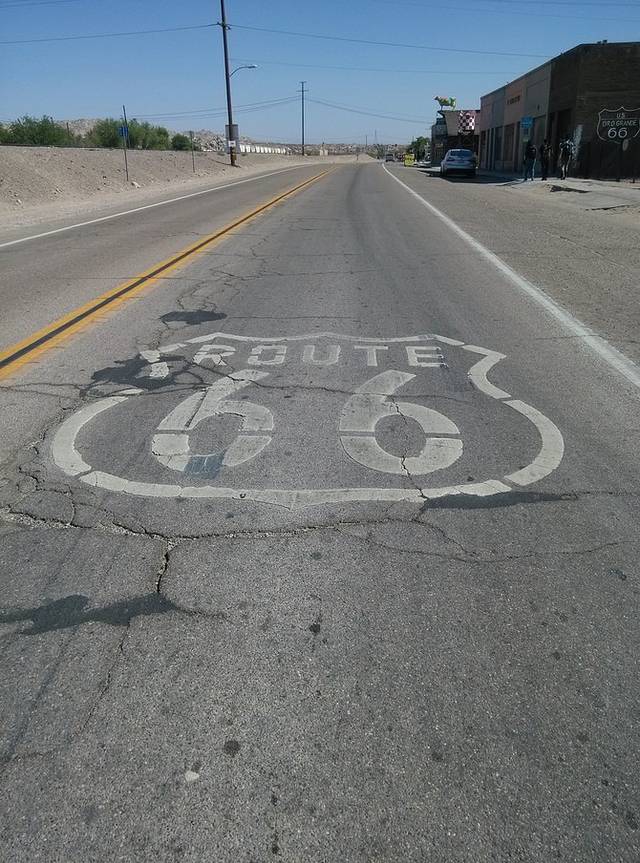 金曼-沙漠奥特莱斯,途经尼德尔斯-海伦代尔-奥罗格兰地,直到奥莱,错过Oatman野驴镇。进入66号公路最后一个州--加利福尼亚州。全程322英里(515.2公里),早晨9点半出发,5点到达。