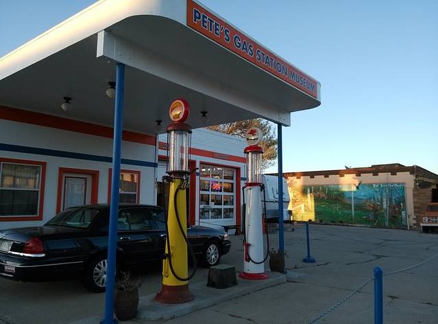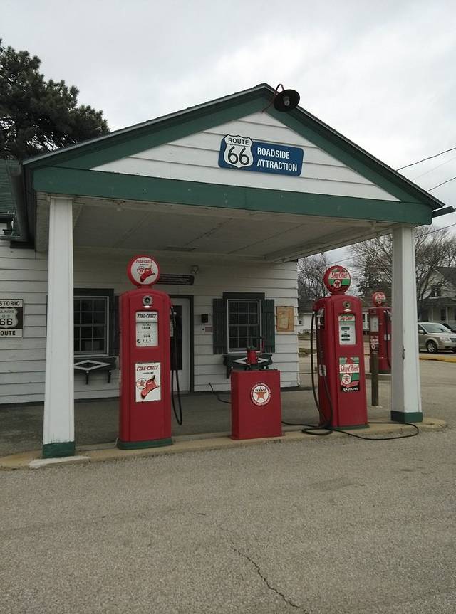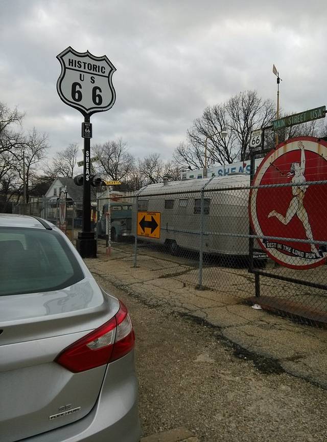 今天最后一站,是Shea's gas Museum,这里收集了66号公路上各个年代样式不同的加油机。时间太晚又是周末,意料之中的关门!好在是铁丝网,能看到院里的大概。车里搜索附近住宿地,然后手机上网Booking看看价格和评价,最终选择Homestyle Inn and Suites Springfield住宿。第一天总算顺利走下来了,车也慢慢熟悉,心里不再忐忑,开始进入在路上的状态。