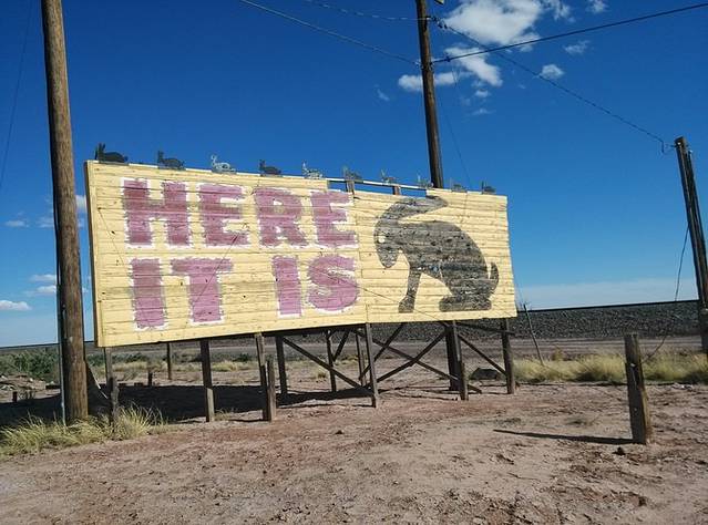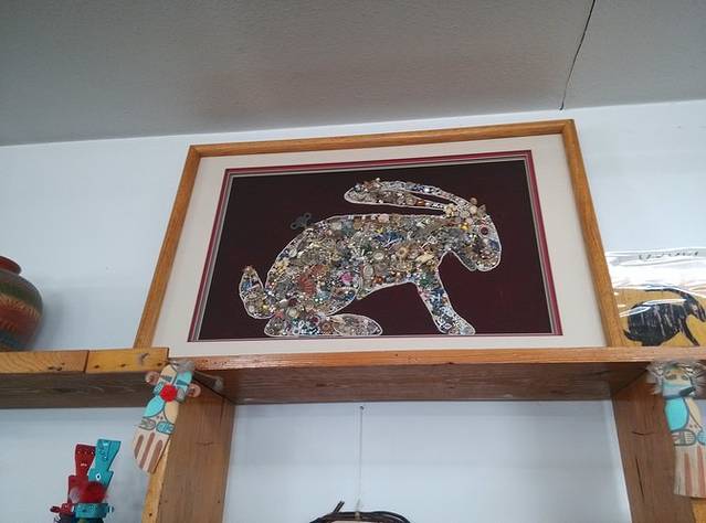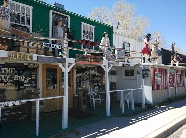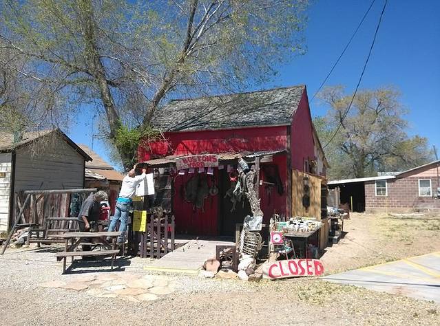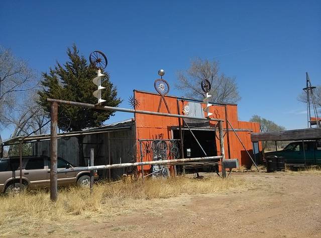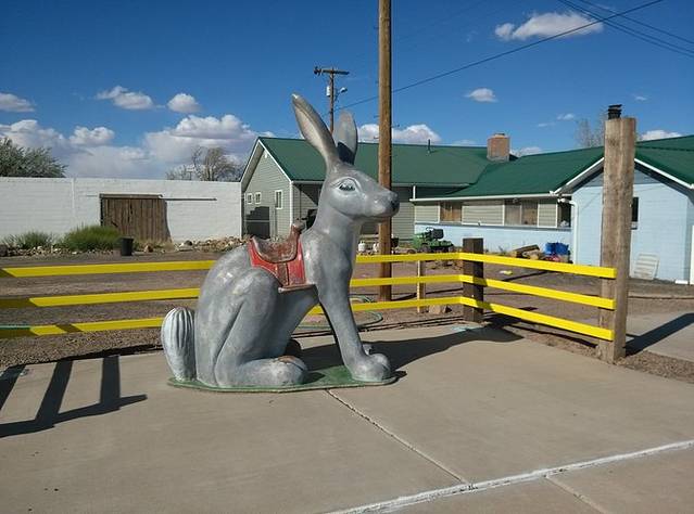 杰克兔交易站,据说66鼎盛时期,黄色标牌绵延几百英里不断缩小距离指到这里。小店还顽强的开着,我估计现在也就是一些旅行者来拍拍照买点纪念品吧。本来以为这里可以压硬币,结果没有。