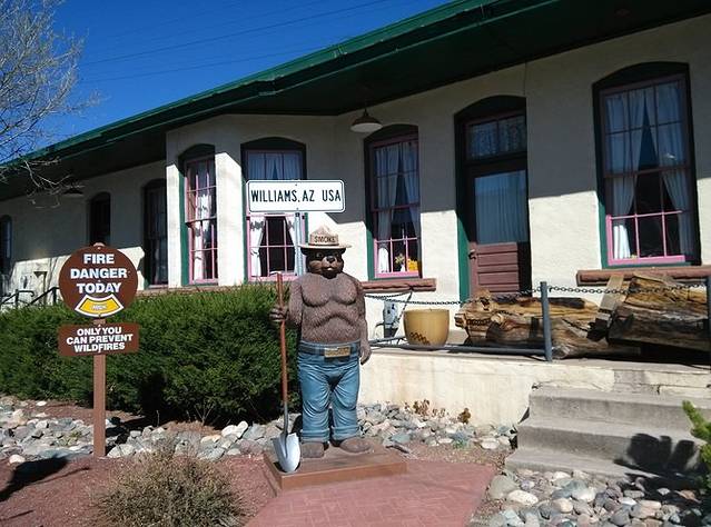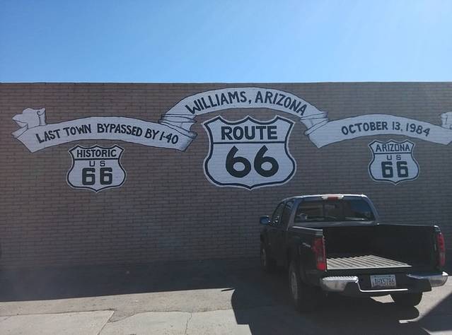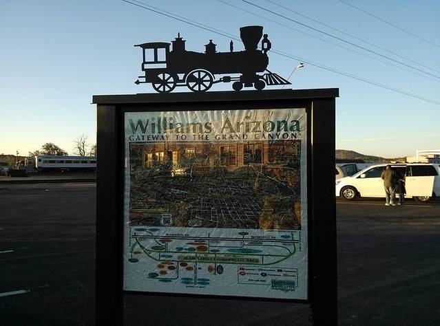 一进威廉姆斯,立刻爱上这个地方。进入小镇的路上,有个镂空的大门,上面写着1881,应该是那个时候建镇的。小城的这段路是66号公路坚持到最后的部分,居民诉诸法律抗争,但是40号高速最终还是在这里开通。小城很小,两条东西向街道单向行驶,街道边各式店铺,很西部很牛仔的地方,让人一下就觉得当初66经过的小镇就应该是这个样子的吧。从这里可以坐火车去大峡谷游览。