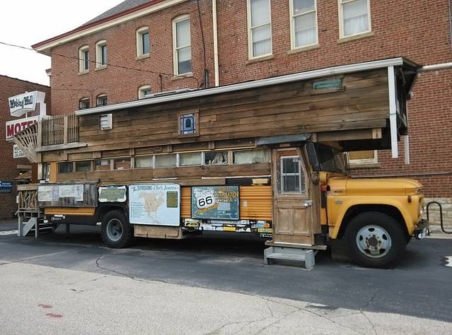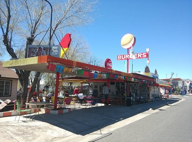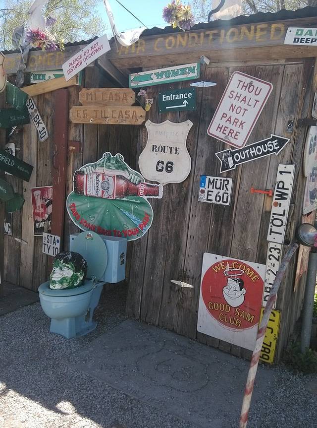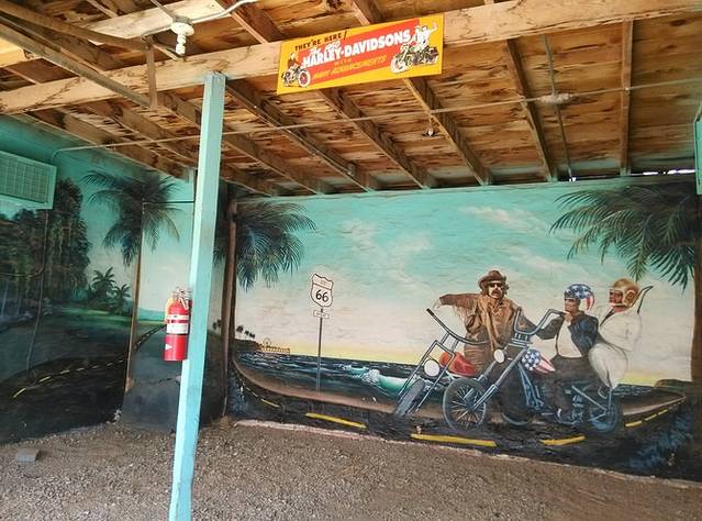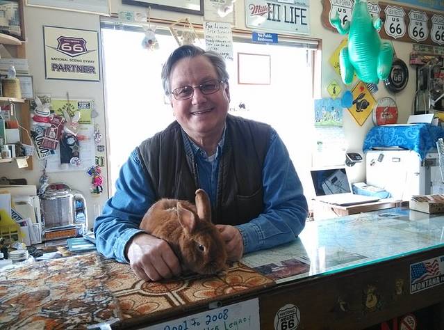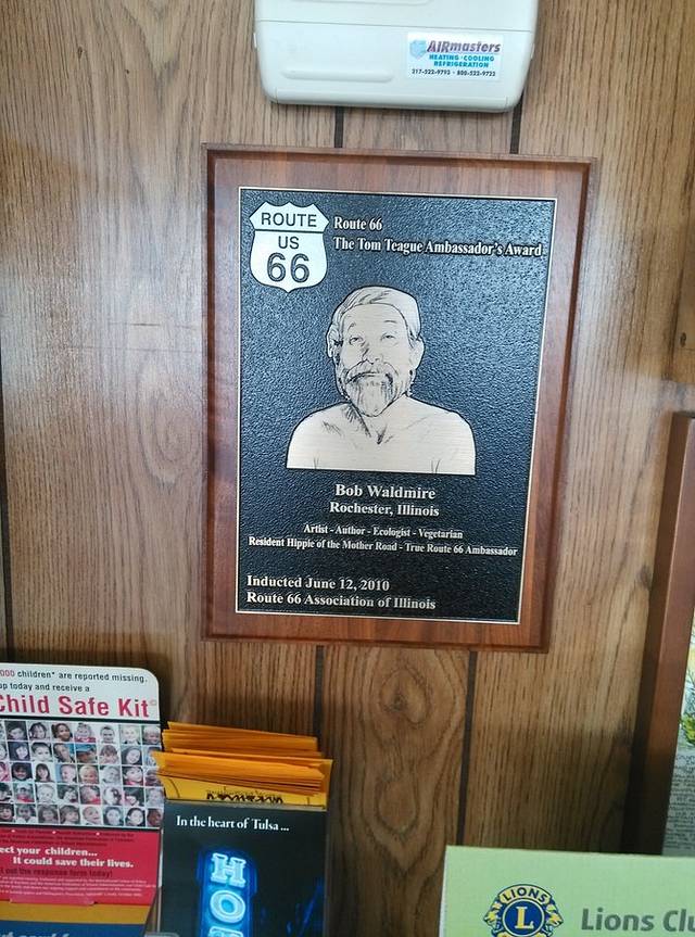 美国最后一个嬉皮士,66的传奇人物,鲍勃的黄色校车就停在这里。鲍勃按照自己的意志生活,在66号公路上旅行画画,环保主义者,素食却吸大麻,救助流浪者,保护野生动物,致力于66的保护和推动工作,非常受人尊敬。在后来的路上,我经常能看到很多老店的明信片,都是鲍勃画的。