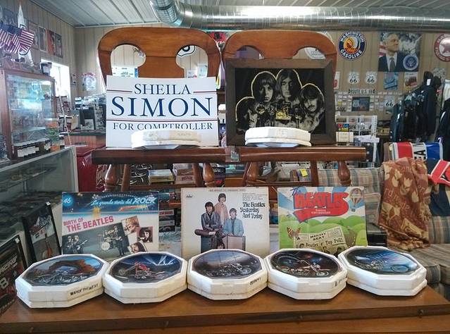 第二站Becky's Barn商店。在主路边上的小路的小路进去,一大片空地上堆了好多东西,再进去,两个大仓库,里面堆的满满当当,铺天盖地都是各种各样的物件,第一次看到这种场面真惊着我了!!!主人是老两口。我问他们收集这些东西用了多少年,老头说我今年61,收集了一辈子。东西太多蒙着尘土,有的地方还挂着蜘蛛网。昨天错过一个书上提到的大仓库商店,今天在这里看到另外一个。 老两口很热心,我去仓库挑东西,老头还特意把录音机打开放老歌曲,感觉象穿行在时光隧道里。这家的东西比后面看到的很多旧物商店都便宜。