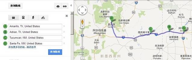 阿马里洛-圣达菲,途经Adrian和Tucumcari,直达圣达菲。行程目前最长的一天,突破极限。早晨9点出发,下午5点到达,因为过州界进入新墨西哥州时间往回拨一个小时,等于今天用了9个小时,284英里(454.4公里)。