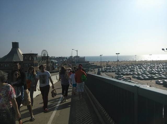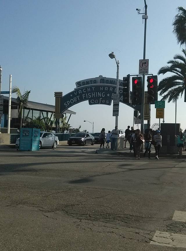 到达圣莫妮卡,找个停车场停好车。用手机google海边的栈桥,66号公路的终点牌就在那里。