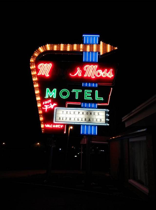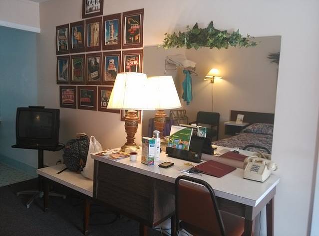 美国是汽车轮子上的国家,公路设施及相关配套服务非常完善,不用担心没地方住没地方加油。因为是全程一个人开车,所以我的原则是坚决不开夜路。每天下午4,5点钟到达一个城镇,随便找个加油站或者能停车的地方,GPS搜索最近住宿地,基本是Motel 6,Super 8,或者印度人开的汽车旅馆,价格平均在50-60美元一晚。