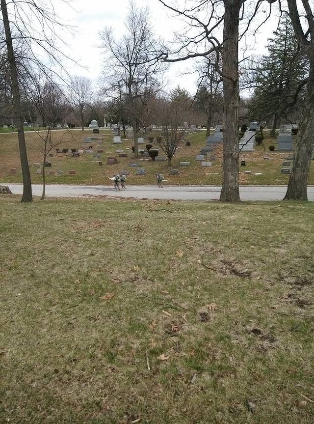 美国大兵在墓地里训练