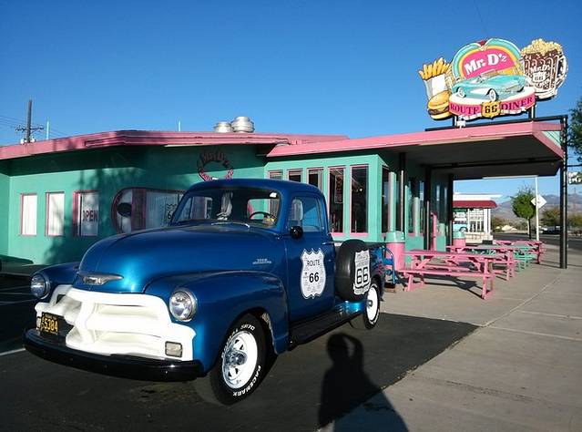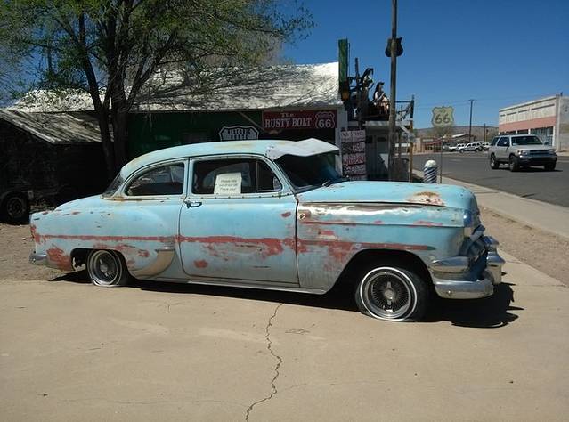 继续向西!到达金曼,入住Motel 6。这里有个很大的汽车二手市场,里面有很多很多老车,可惜到晚了没去看。