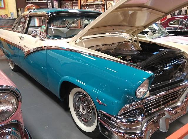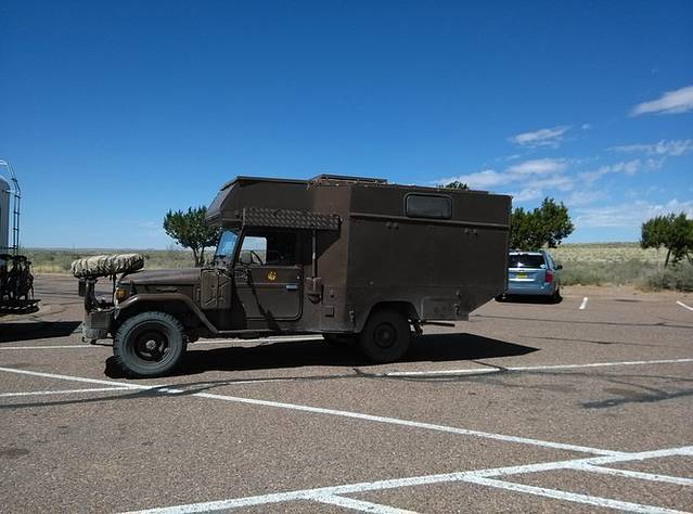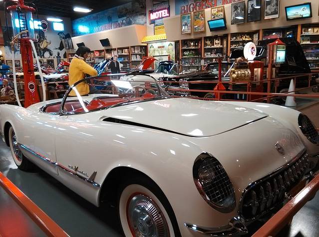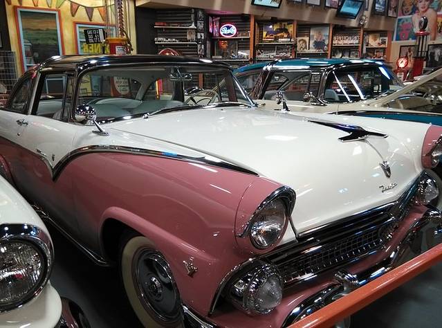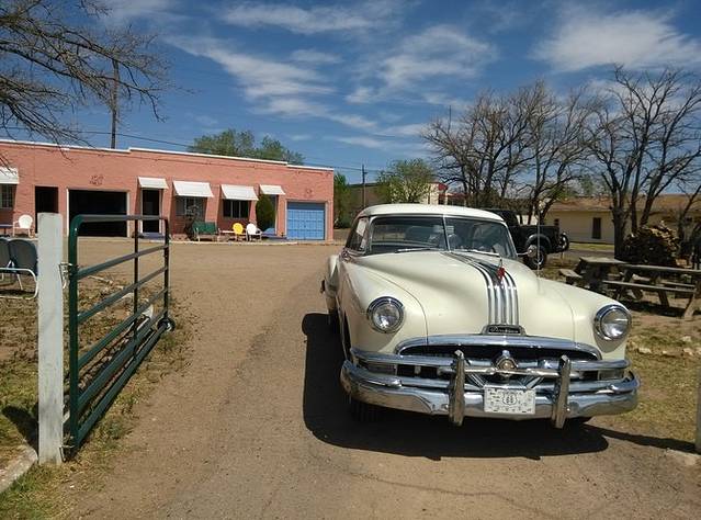 刚过中点,GPS就显示倒回了一个小时,进入新墨西哥州。路上有个高速加油站休息区特别大,超市里面居然设了一个民间收藏的老汽车博物馆(Russells Truck&Travel Centet)。不同年代的老汽车陈列两排,带着岁月的记忆,闪着迷人的光泽,大开眼界!