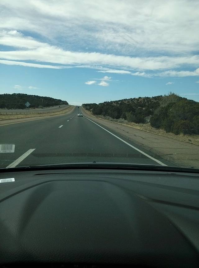 比昨天还荒凉的路,高速两边除了山就是土,啥景没有只能一路开车前行。下40高速去圣达菲的285路段有60多公里,碰上的车不超过30辆,基本还都是对向行驶,我经常处于前无古人后无来者的状态。