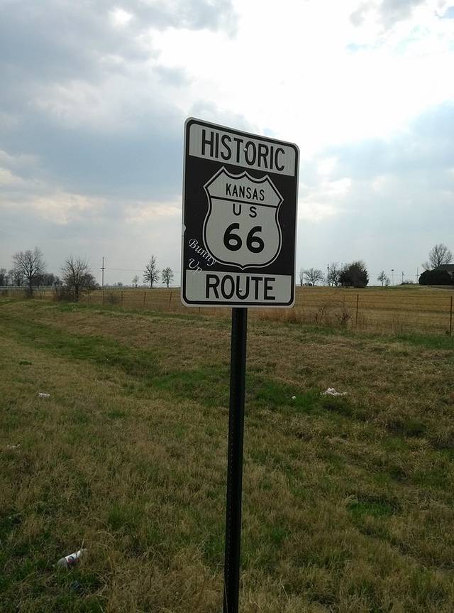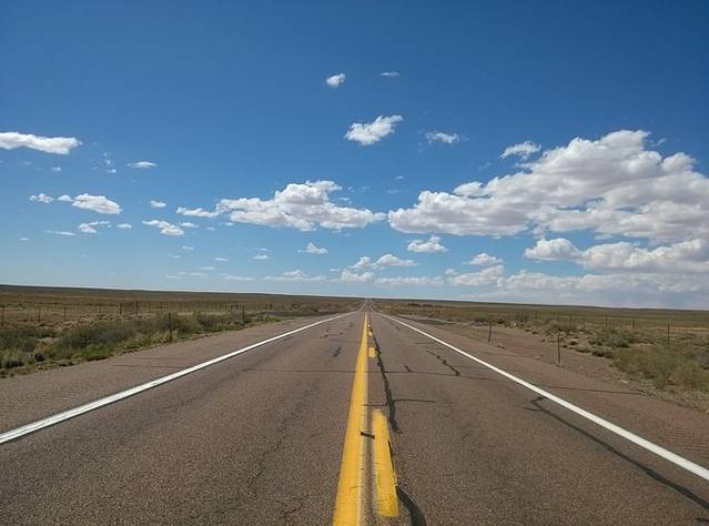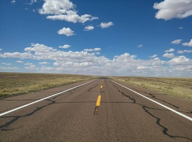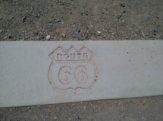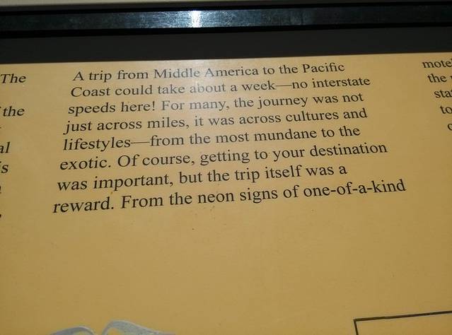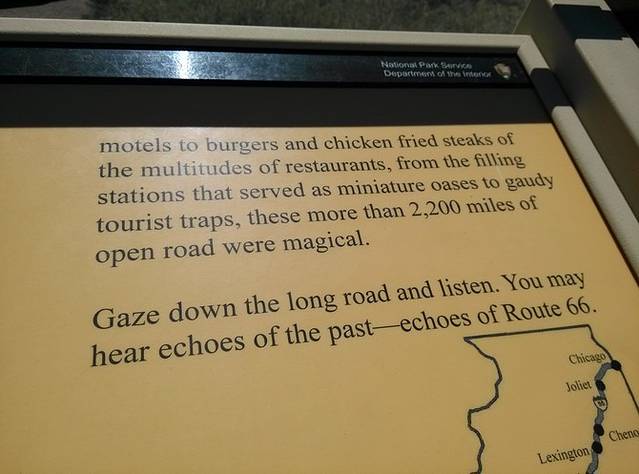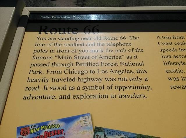 在石化林国家公园(Petrified Forest National Park)里,有一段废弃的66号公路的路基,那里立着一块文字解说牌,我觉得真正写出了66号公路的意义所在。