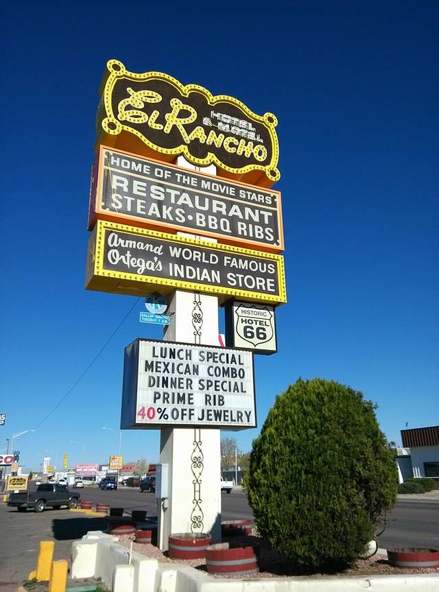 盖洛普,新墨西哥州最后一座城市,世界印第安人的首都。其中纳瓦霍族语言结构复杂,二战时曾作为密码在战场使用。吴宇森的《风语者》讲的就是保护纳瓦霍族译电员的故事。牧场酒店,1937年导演格里菲斯和他兄弟建造,是西部片明星的奢华居所。二楼墙上挂满好莱坞明星照片。