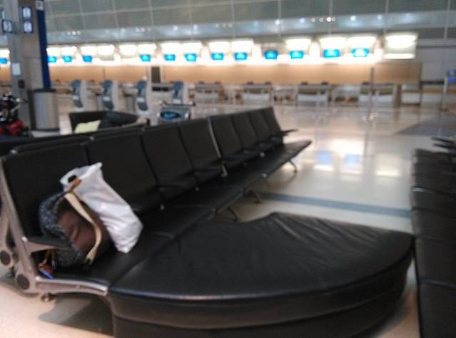海关官员倒是蛮热情,检查完行李告诉我去哪里再次办理托运,然后可以上楼大厅找地方睡觉,第二天一早安检上班再进机场乘机飞芝加哥。