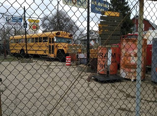 66博物馆的小门,鲍勃的黄色校车就停在门外的空地上